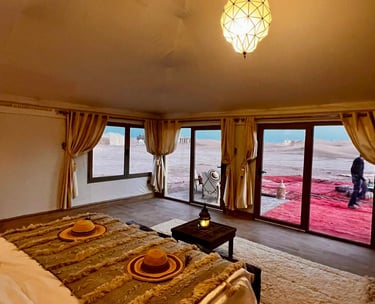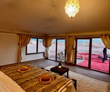 Profitez d'un séjour ressourçant dans l'un de nos Tipis écologiques, offrant une vue imprenable sur les montagnes de l'Atlas et un accès direct au Lac.